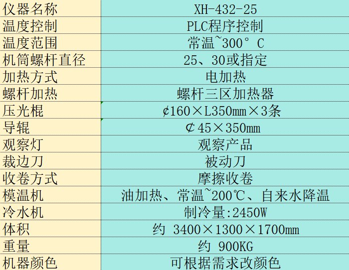 材料從料斗里放入經(jīng)過擠出裝置的塑化和擠出變?yōu)榱餮訝顟B(tài),再從主機經(jīng)模頭出來,通過兩輥壓延機進行壓延。